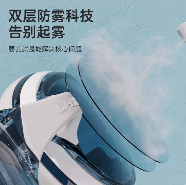 李宁泳镜防水防雾高清近视度数男专业游泳眼镜潜水装备女泳帽套装(白色)